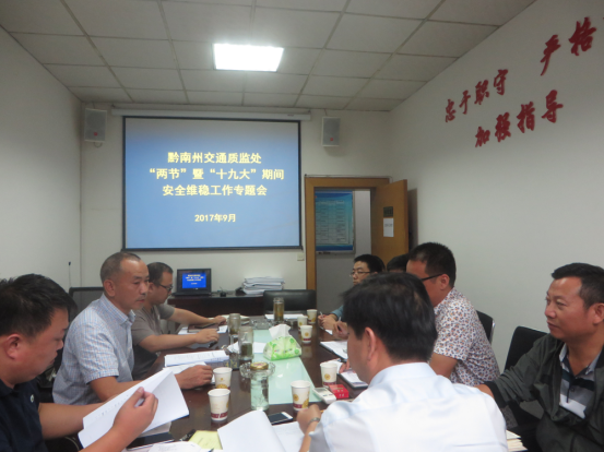 会上,中铁十二局项目部、福泉分部、都匀分部负责人分别对在建施工项目安全维稳工作情况及问题进行了汇报,前期上访情况已经协调安抚稳定,已经把农民工工资结算清楚,现工人基本情况安全稳定可控,在安全生产上,已进行工作安排部署,对各分部施工班主以工作座谈会、约谈的方式进行了安全维稳工作部署,开展安全隐患排查,确保在“两节”暨“十九大”期间各施工项目施工安全稳定。
